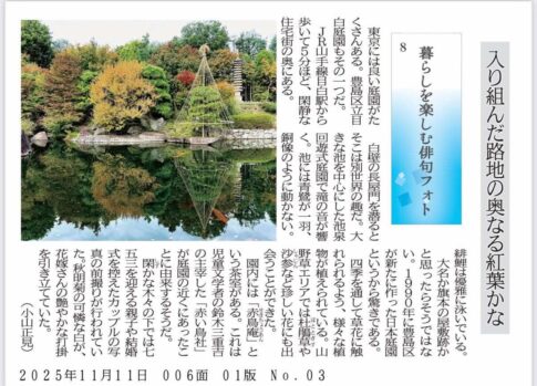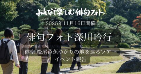 俳句フォトエッセイ短日の同窓会の紙コップ2025.12.02冬ざるる朝の歯医者の待合室2025.12.01入り組んだ路地の奥なる紅葉かな2025.11.30色も線も闊達灯火親しめり2025.11.29俳句フォトエッセイ一覧お知らせイベント開催報告:俳句フォト深川吟行 ~俳聖 松尾芭蕉ゆかりの地を巡るツアー~(11月16日)2025.11.19【2025年11月16日開催】俳句フォト深川吟行 ~俳聖 松尾芭蕉ゆかりの地を巡るツアー~(募集締切りました)2025.10.14イベント開催報告:第二回俳句フォトの会例会(9月14日)2025.09.14都政新報で俳句フォト新連載がスタートしました!(9月9日)2025.09.12令和6年度中原区市民提案型事業の結果報告会に出席しました(7月16日)2025.07.16お知らせ一覧小山正見の俳句フォト姉妹して可憐に色を放ちけり2010.04.01七重八重バイリンガルの桜かな2010.04.01はんなりと耳を澄ませて花見かな2010.04.01寄り添って猫の子明日の夢を見る2010.04.01もっと見る