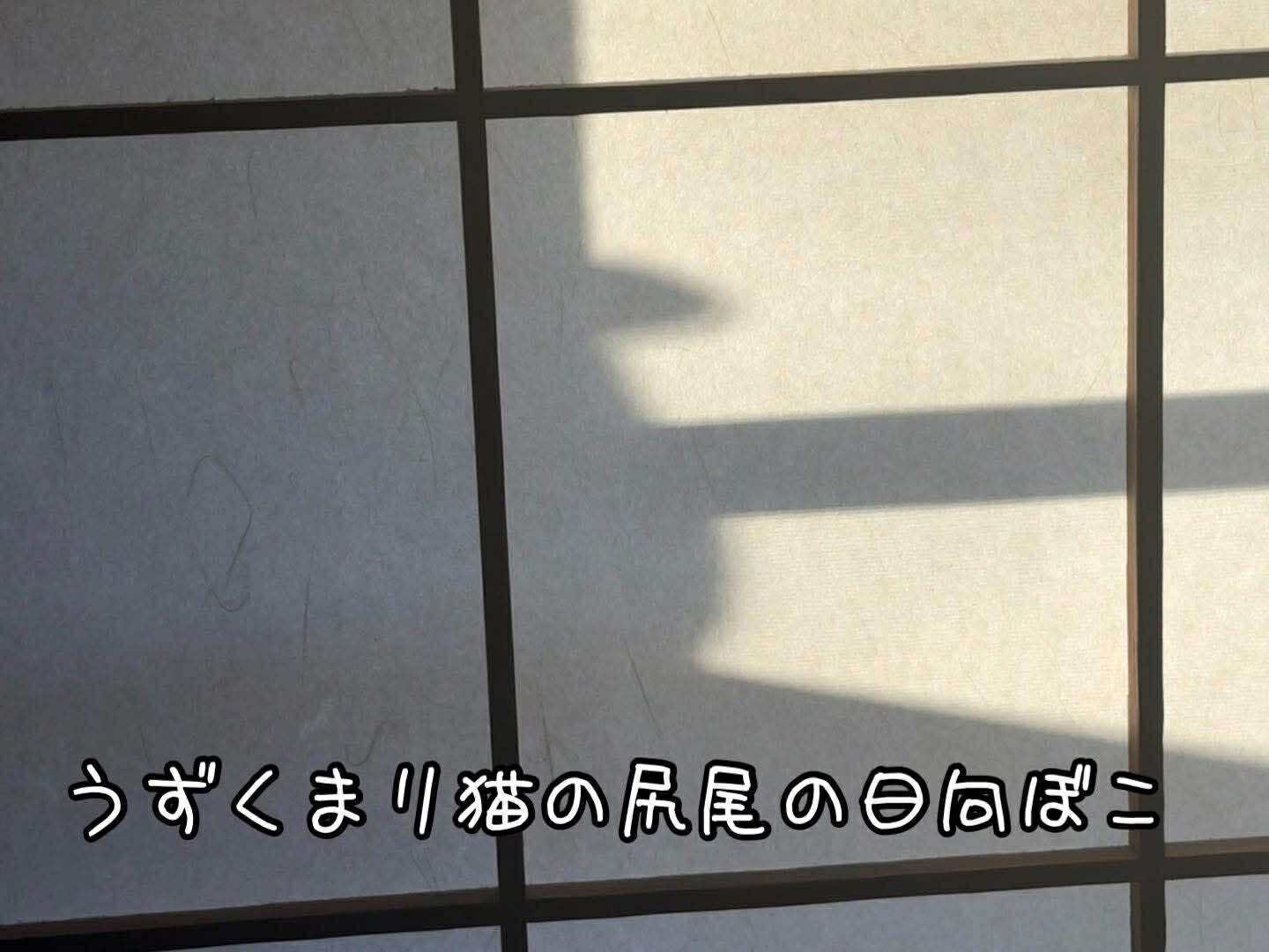 俳句フォトエッセイ2025.12.06うずくまり猫の尻尾の日向ぼこ 小山正見何の写真か、これだけではさっぱり分からないだろう。これは猫のお尻と尻尾なのだ。エアコンの室外機の上にうずくまっている猫の影が障子に映っている様子だ。ぼくは猫を飼ったことはないが従姉妹が飼っていた。まるまると太った猫で戸口の脇の猫専用の出入り口を使っていた。顎の下を撫ででやるとゴロニャンとして可愛かった。猫の先祖はリビアヤマネコである。およそ一万年ほど前からネコはニンゲンと親しくなった。農耕が始まり、人間の周りにネズミが増えた。そのネズミを狙って、ネコが集まってきたという訳だ。こうして、ネズミを介して猫と人間、お互い、持ちつ持たれつの関係が生まれた。猫と人間は対等なのである。日本に猫が入ってきたのは、飛鳥時代と言われる。仏教の伝来と一緒だ。仏典をネズミから守るために重宝がられたらしい。猫文化が爆発したのは、江戸時代だ。歌川国芳の浮世絵。東海道五十三次の猫づくしの絵は有名だ。化け猫の伝説や招き猫も江戸時代に生まれた。明治になってからは漱石の「吾輩は猫である」。どんどん猫はアイドル化してくる。現代では、猫カフェもあり、猫カレンダーもある。テレビの猫番組も人気だ。ちなみに、ぼくのスマホのケースは佐山愛作の猫づくし「ニャーリーを探せ」である。