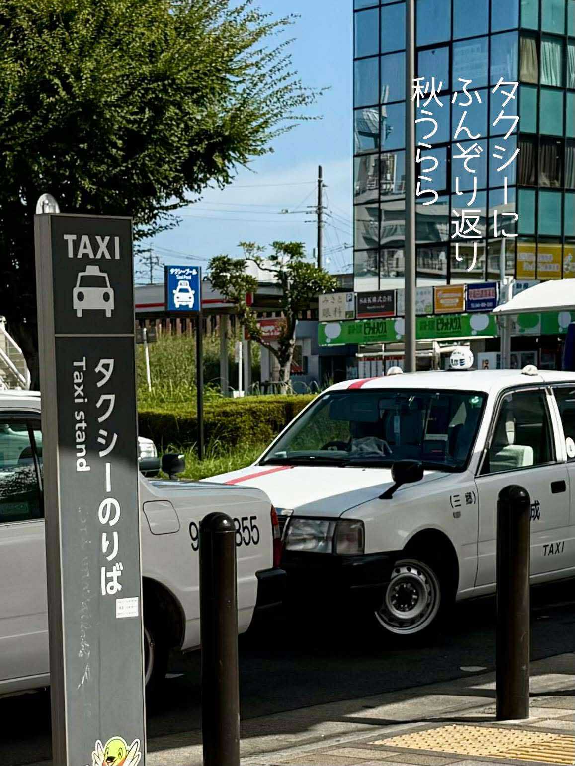 俳句フォトエッセイ2025.10.20タクシーにふんぞり返り秋うらら小山正見武蔵野線の三郷駅前である。ぼくは、毎月一度ここからタクシーに乗る。ふれあい早稲田診療所に向かうためである。ここで、認知症デイサービスの利用者さんの俳句教室を行なっているからだ。一番緊張する時間だが、みんなと一緒に笑いまくる。終わると楽しい。この日は、秋田では熊鍋を食う秋日和この日だけ孫が支払う敬老日などの句が生まれた。秋の夜はすぐ寝ちゃう巨人負けたからの句にはみんな爆笑!タクシーに乗っている時間はわずかなものだ。料金は700円だが、タクシーを利用すると自分がお大尽になった気分になる。車をやめたのは15年前だ。車を所有していると経費がかかる。車代に加えて、保険料や車検、駐車場代も必要になる。だったら、「その分タクシーに乗れば良い」。そうすれば、年に20万円も30万円もタクシーに乗れるはずだ。しかし、現実になるとケチケチして、ほとんどタクシーに乗らずに過ごしてきた。ぼくが最初に車に触れたのは、妻が運転していたダイハツの軽だ。時速60キロにもなると、マフラーから黒い煙が輪のように吹き出した。ぼくはその車で清瀬の結核療養所と自宅を往復した。次の車は、ホンダのシビックだった。濃い緑色の車体が美しかった。当時で60万円くらいだった気がする。新車が到着して、その日に釘に車体を擦ってしまった。その時妻に責められた記憶はない。今になって妻の寛容さに気づく。次の車はトヨタのカローラだ。父親が運転をやめるというので譲り受けた。更にスズキの軽、シビックシャトルと続く。シビックシャトルはバンのように後部座席が倒れるので、子連れの旅行に最適だった。最後は2台続けてトヨタのカリーナe x ivだった。車高が低く、デザインが大好きだった。ラジエターから水漏れをしたが牛乳パックに水を用意し足しながら走った。最後の運転は、既に認知症を発症していた妻を連れて、レンタカーでしまなみ海道を走ったことだ。2015年だった。瀬戸内海に浮かぶ島々が今でも目に浮かぶ。それからは一切運転していない。これからは、もう少しタクシーに乗ってふんぞり返ってもいいのかもしれない。