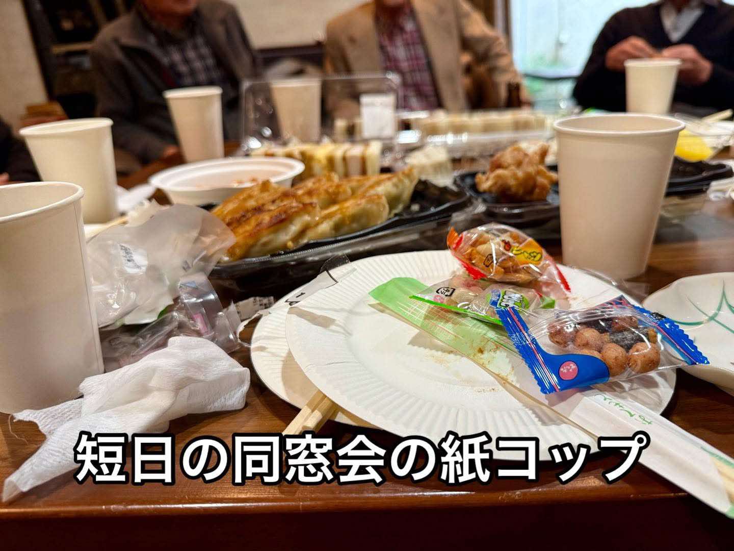 俳句フォトエッセイ2025.12.02短日の同窓会の紙コップ小山正見数週間前に小学校時代のクラスメートのTから電話があった。「クラス会をするから来いよ」という誘いだった。数年前、「クラス会は今回で終わりにする」とされていた。しかし、仲の良い数人で時々会っていたらしい。そして今回は「またみんなを集めよう」という話になり、ぼくにも連絡が来たというわけだ。集まったのは10人だった。50人以上いたクラスだ。10人が多いか少ないかはわからないが、何となく懐かしい。皆が持ち寄った食べ物でテーブルの上はいっぱいである。常連のMがいない。「どうしたんだ」と聞くと「死んだ」という答え。クラスで人気者だったIもKも既にこの世にはいなかった。生きて集まっている奴も結構大変だ。最初はひとしきり病気談義。電話をかけてきたTは週3回の透析を受けているという。Oは心臓の手術を2回してステントを入れている。Wは脳梗塞になったが、発見が早かったので助かったと話した。いやはや、ぼくの糖尿病などはかわいいものかもしれない。最近の若者の話になり、どんな奴を採用するかという話題に移った。「きちんと説明もできないから困る」という話から始まったのだが、今なお100人以上の社員を抱える中小企業で現役の社長をしているBの話が面白かった。頭のいい奴も悪い奴も使い物になるのは半分。むしろ、頭のいい奴は7割ぐらいダメというのだ。すると大企業の技術者として勤め上げたCが続ける。「一時、プレゼンテーション能力に長けた奴を重用した時期があった。それが会社をダメにした」「なぜ?」「おしゃべりばっかり」(笑)世の中、学力だけではないのだ。ついでにもう一つ印象に残る話があった。座の真ん中で女王然としてるA子の話だ。彼女は小学校時代からそうで、ぼくなどは怖くてとても近くに寄れなかった。そのA子は、皇室に物品を納めるほどの豊かな商人の子として生まれた。結婚までは順調だったが、旦那が莫大な借金を作って姿を消してしまった。途方に暮れた彼女は、水商売を始め、苦境を凌ぎ一人娘を育て上げた。その過程で新しい伴侶にも恵まれた。ところが「水商売するような女はうちの人間ではありません」と母親に絶縁されたと言う。結局、新しい伴侶を紹介できないまま母親は亡くなった。葬式に赴いた彼女は、玄関まで来て「絶縁したことを取り消してくれなくては敷居を跨ぐことはできない」と詰め寄り跡取りの嫁さんに謝罪させた。そして母親の顔を見て、「この馬鹿野郎!」と大声で叫んだという。「周りは凍りついていたが、私はとてもスッキリした」と晴れ晴れした顔で話した。朝ドラの主人公にでもなりそうな話だ。他にも面白い話があったが、ここでは割愛する。こんなことを書いてしまったので、恐ろしくて次のクラス会の案内が来ても顔を出せる自信がない。