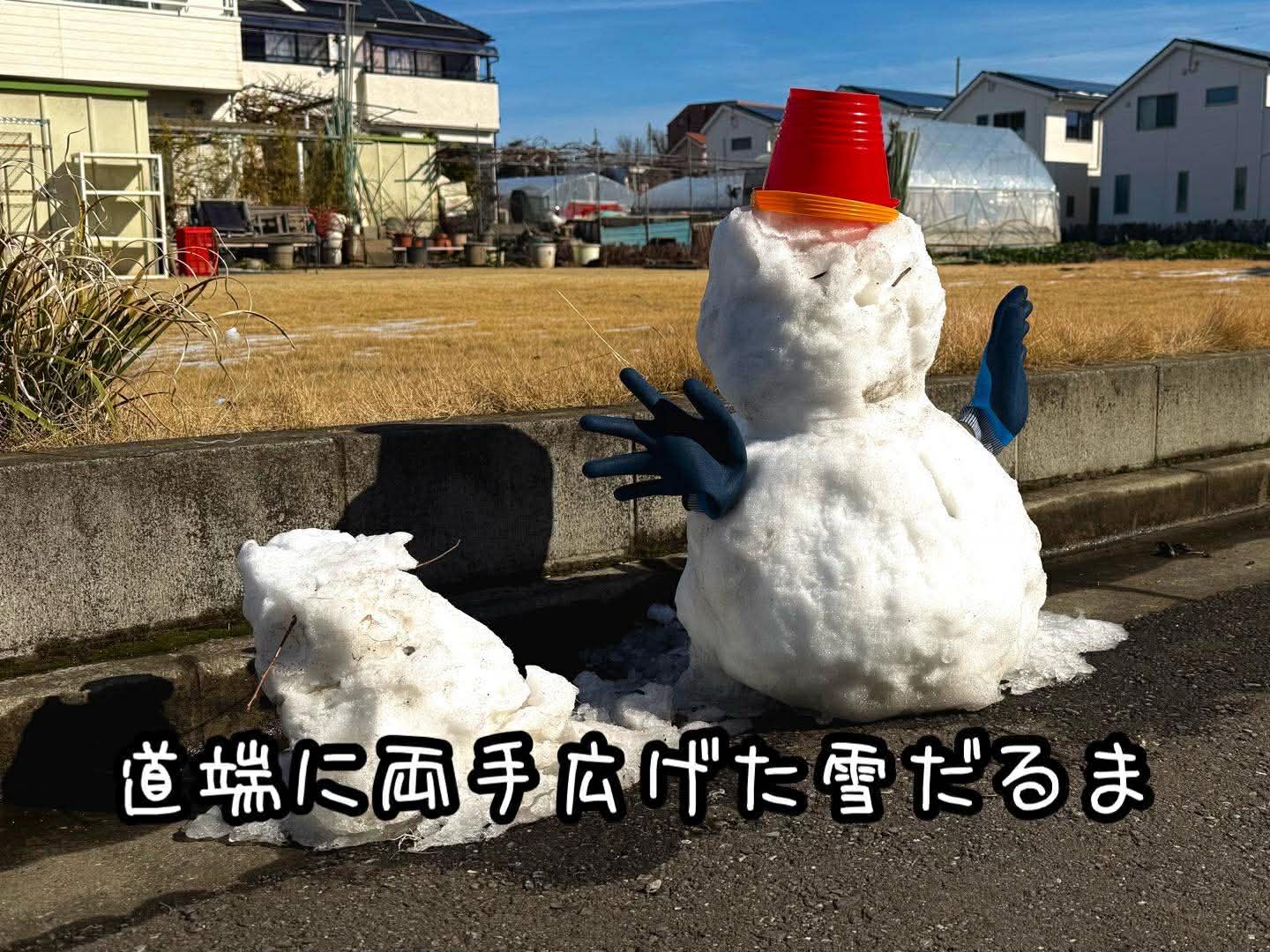 道端にまだ小さな雪だるまが溶け残っていた。手袋の両手を広げ、よく見ると目もちゃんとついている。