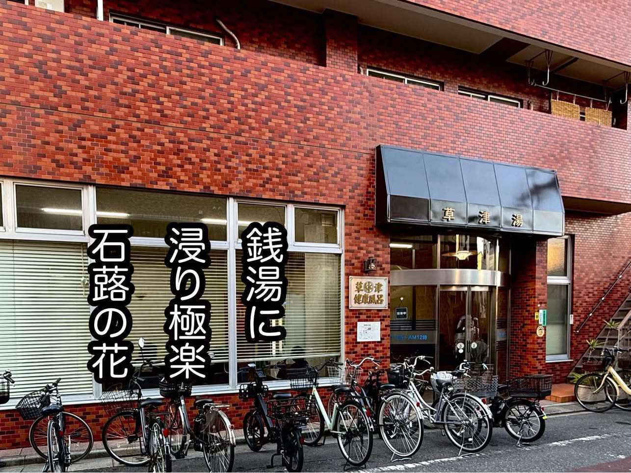 マンションの一階にある銭湯で、草津湯という。銭湯というと、お城のような門構えで高い煙突があるイメージがあるが、最近は煙突がない銭湯も多い。燃料が重油から都市ガスに換わったからだろう。