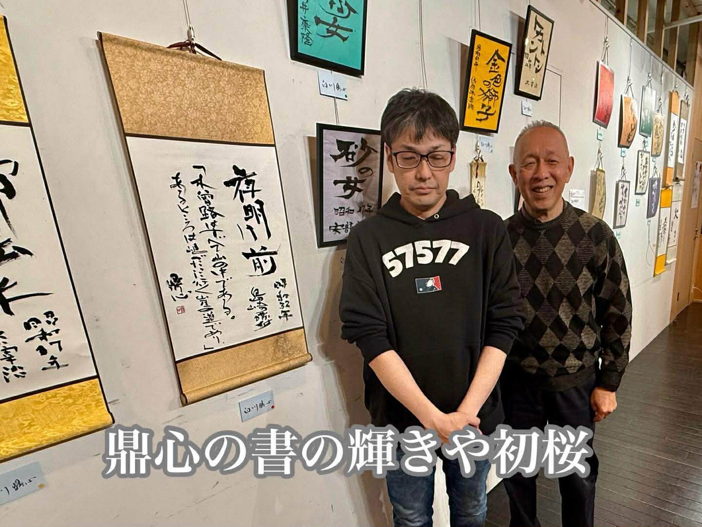 俳句フォトエッセイ2026.04.07鼎心の書の輝きや初桜小山正見白川鼎心さんは、書家だ。その上、俳句も短歌も嗜み、各地で積極的に活動を広げておられる。つい最近、きごさい俳句大会の揮毫をお願いし、見事な作品を書いていただいたばかりだ。また先日は、浜松で書展があった。今回は都内。しかも、大井町線の中延。我が家からすぐそばだ。「初日なら鼎心さんに会えるだろう」20日の夕方に出かけた。中延の商店街のアーケードをスマホを頼りに歩いた。ふと見ると、右側に「重盛の人形焼」がある。かの有名な水天宮にある重盛と同じだ。思わず餡なしの人形焼を求める。聞くとやはり「分家」だという。会場の隣町珈琲は、地下にあった。広いスペースの半分は書架になっている。それだけでなく、様々なイベントが催されている。壁には、今井聖の「俳句という「詩」の根拠」(全6回)という連続講座もあった。文化拠点としての役割を担っている貴重な場所なのだ。今回の書展は「品川ゆかりの作家の本のタイトルで辿る昭和100年」という題がつけられている。筒井康隆や大岡昇平、安部公房、島崎藤村まであった。どれも字がいい。鼎心さんのお父様にもお目にかかれた。お父様は水戸で歯科医をされているが、この日はわざわざ応援に駆けつけられたのだ。優しい目元が印象に残った。鼎心さんはこれから大きく伸びていく人だ。ますますの活躍を願ってやまない。書展は26日(木)まで行われている。(月曜は定休日)